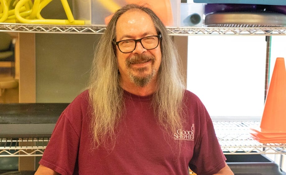 Prior to starting with Good Shepherd, Brooke was in a wheelchair. He couldn’t stand up on his own, let alone sit up.