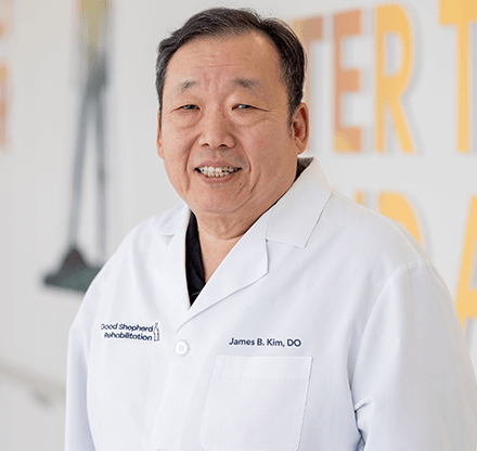 James B. Kim, DO, is a physical medicine and rehabilitation (PM&R) doctor, or physiatrist, and Medical Director, Occupational Medicine at Good Shepherd Rehabilitation.